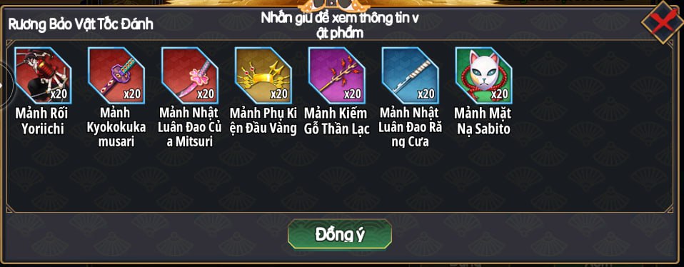 Tsuba - Medium x1 Advanced Summon Ticket x5 Lucky Token x5 Lv.3 Stone Chest x1 |