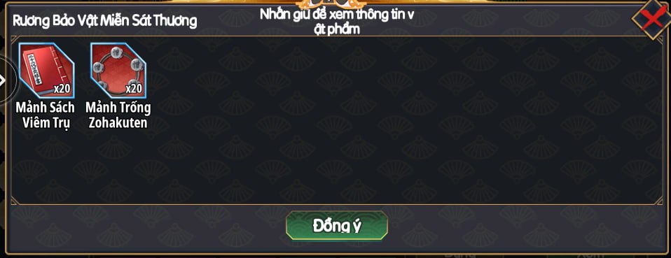 Rương Vàng Thường x2 Vé Chiêu Mộ Cao Cấp x5 Sách Kỹ Năng x2 Mảnh Nhật Luân Đao Răng Cưa x10 |